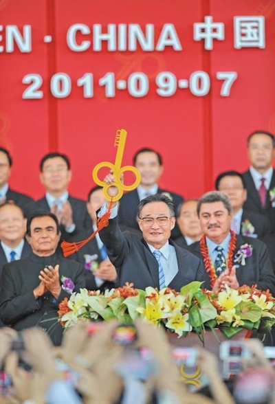 二〇一一年九月七日,吳邦國同志在福建廈門出席第十五屆中國國際投資貿(mào)易洽談會開館式。新華社記者 張國俊攝