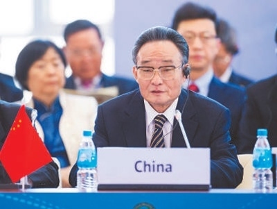 2013年1月28日,吳邦國同志在俄羅斯符拉迪沃斯托克出席亞太議會論壇第21屆年會,并作題為《堅持和平發(fā)展 促進合作共贏》的主旨發(fā)言。新華社記者 王 曄攝