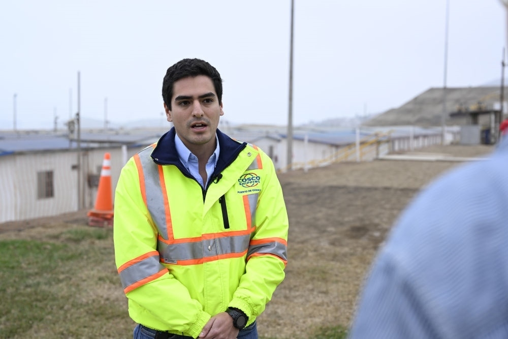 2024年6月21日,秘魯青年丹尼爾·哈雷斯在錢(qián)凱港項(xiàng)目現(xiàn)場(chǎng)接受媒體采訪。項(xiàng)目啟動(dòng)之初,丹尼爾·哈雷斯還是一名剛?cè)肼殘?chǎng)的實(shí)習(xí)生,如今27歲的他已成長(zhǎng)為項(xiàng)目工程部合同管理員。隨著錢(qián)凱港建設(shè)不斷推進(jìn),項(xiàng)目的工作崗位在當(dāng)?shù)爻蔀槟贻p人就業(yè)的熱門(mén)選項(xiàng)。