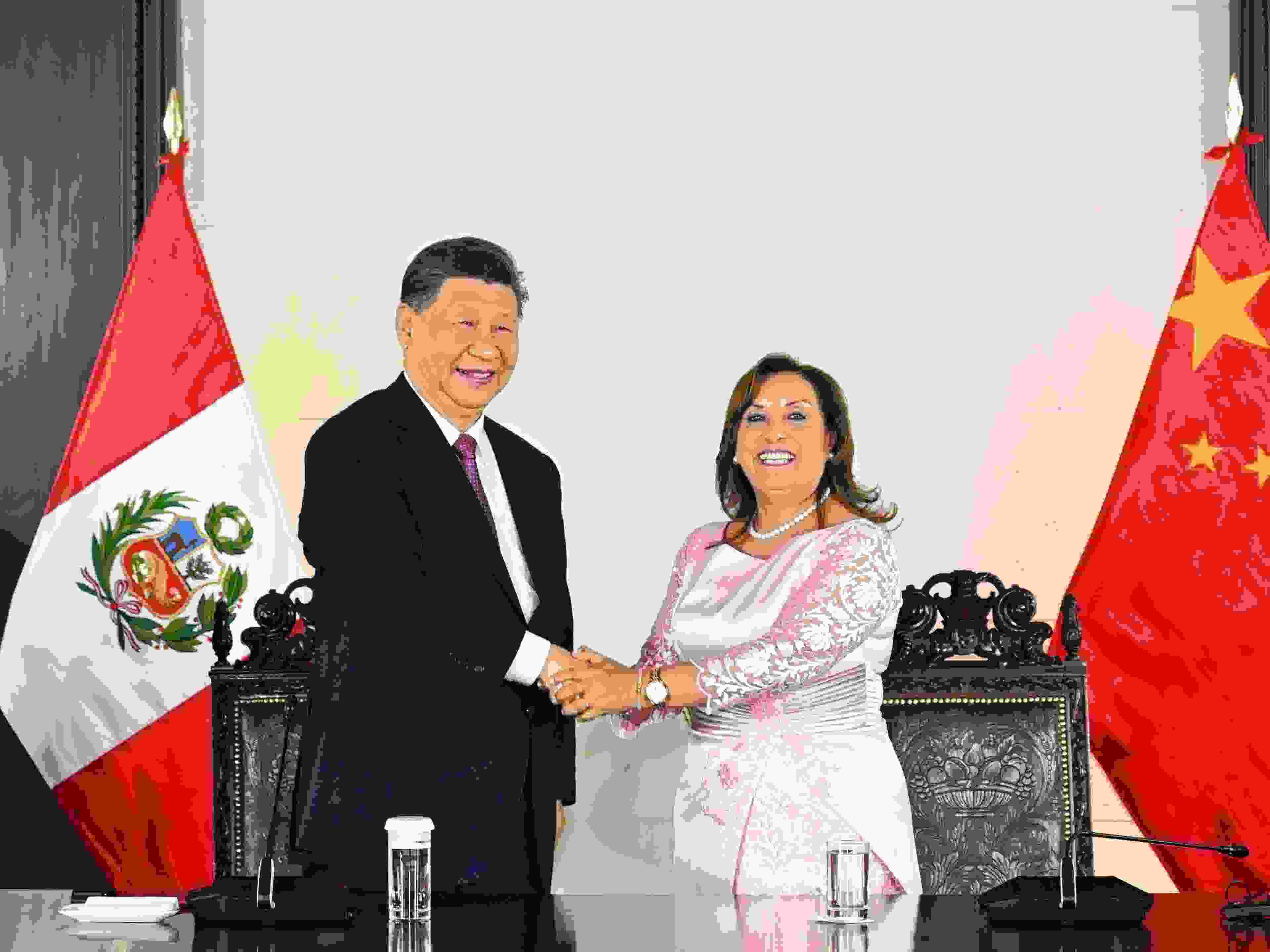 當(dāng)?shù)貢r(shí)間2024年11月14日晚,國(guó)家主席習(xí)近平同秘魯總統(tǒng)博魯阿爾特在利馬總統(tǒng)府以視頻方式共同出席錢(qián)凱港開(kāi)港儀式。新華社記者 謝環(huán)馳 攝