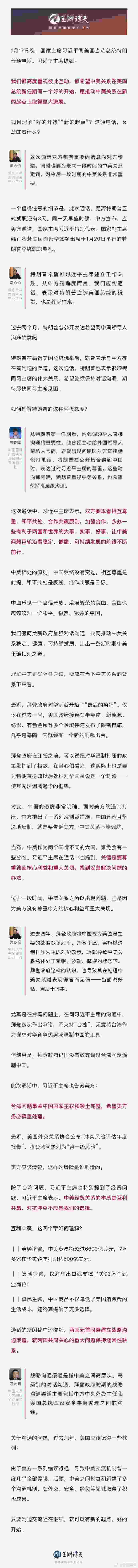 1月17日晚,中美元首通電話。一個(gè)值得注意的細(xì)節(jié)是,此次通話,距離特朗普正式就職還有3天。這通電話,意味著什么?來看譚主的獨(dú)家解讀。