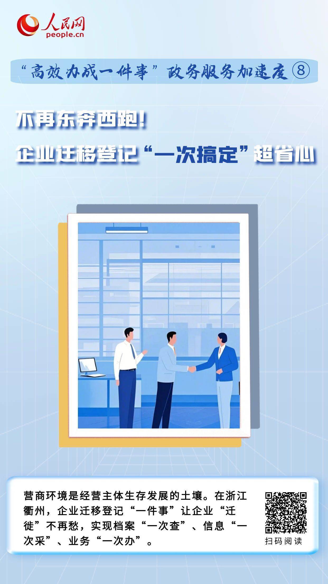 在浙江衢州,企業(yè)“遷徙”不再愁,通過(guò)建立線(xiàn)下協(xié)同、線(xiàn)上議題聯(lián)動(dòng)機(jī)制,將原先企業(yè)遷移涉及7個(gè)部門(mén)15個(gè)環(huán)節(jié),壓減為通過(guò)“1個(gè)平臺(tái)、1個(gè)環(huán)節(jié)”,實(shí)現(xiàn)檔案“一次查”、信息“一次采”、業(yè)務(wù)“一次辦”。