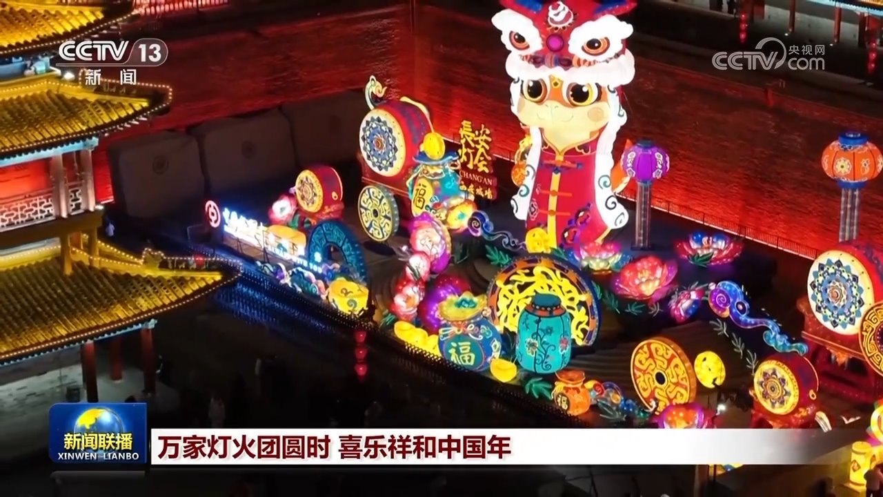 央視網(wǎng)消息(新聞聯(lián)播):福滿萬戶家,錦繡中國年。習(xí)近平總書記說,過好春節(jié)意味著新一年有一個(gè)好的開端,家家戶戶幸福生活、老老少少開心快樂,就是人間美景。我們要一起努力,讓這美景越來越靚麗。這個(gè)新春佳節(jié),神州大地處處張燈結(jié)彩、喜氣洋洋,人們在溫暖祥和的節(jié)日氛圍中,感受濃濃的年味,共享國家發(fā)展成就,共同祝愿偉大祖國國泰民安、繁榮昌盛。