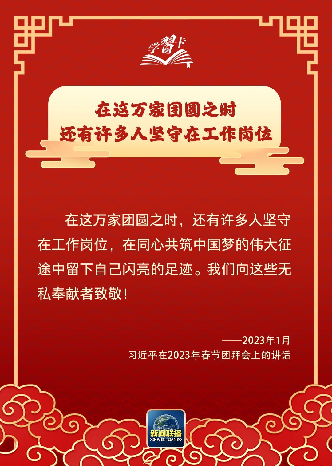 習近平總書記曾說:“我最大的心愿,就是大家都能歡歡喜喜過好年。”在這辭舊迎新、萬家團圓之際,讓我們聆聽總書記的暖心話語,一起學習↓