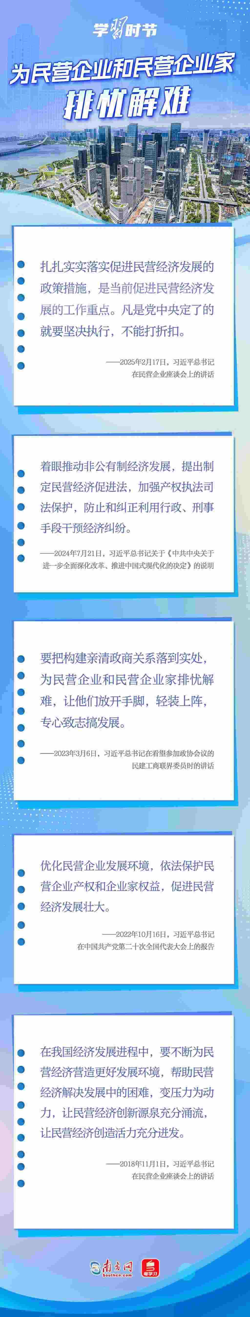 黨的十八大以來(lái),習(xí)近平總書(shū)記對(duì)民營(yíng)經(jīng)濟(jì)發(fā)展高度重視、念茲在茲,多次重申堅(jiān)持“兩個(gè)毫不動(dòng)搖”的重要方針,強(qiáng)調(diào)鼓勵(lì)、支持、引導(dǎo)非公有制經(jīng)濟(jì)繼續(xù)發(fā)展壯大,為實(shí)現(xiàn)民營(yíng)經(jīng)濟(jì)健康發(fā)展、高質(zhì)量發(fā)展注入強(qiáng)大信心和動(dòng)力。讓我們一起學(xué)習(xí)習(xí)近平總書(shū)記關(guān)于民營(yíng)經(jīng)濟(jì)的重要論述,在關(guān)鍵時(shí)刻讓民營(yíng)企業(yè)和民營(yíng)企業(yè)家堅(jiān)定發(fā)展信心,踏踏實(shí)實(shí)謀發(fā)展。