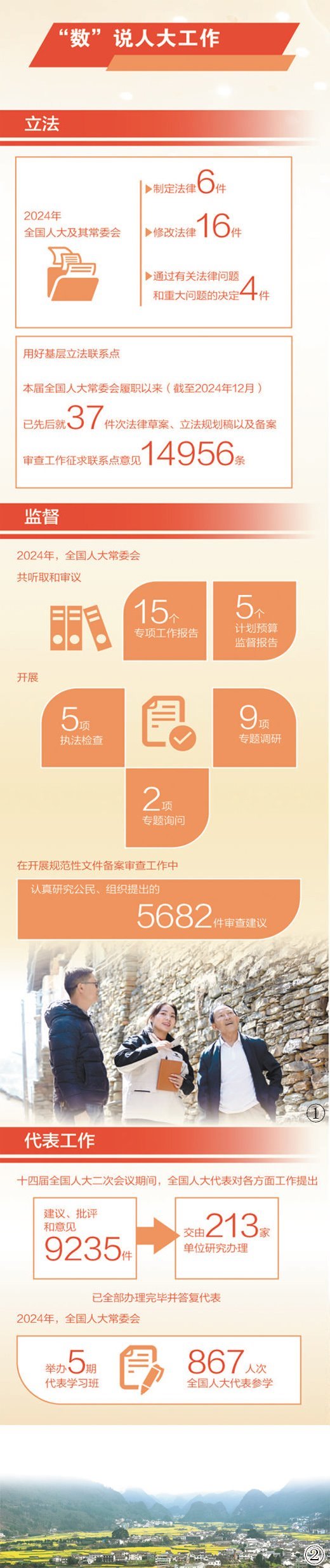 人大信訪是全國人大常委會聯(lián)系人民群眾的重要渠道。2024年全年,全國人大常委會委員長會議兩次聽取審議信訪工作情況報告,健全完善人大信訪轉(zhuǎn)辦督辦、綜合分析等工作機制,提升信訪工作法治化水平……過去一年,全國人大常委會切實把群眾的“金點子”、好建議,轉(zhuǎn)化為惠民生解難題助發(fā)展促改革的行動力,更好地支持和保證人民當(dāng)家作主。