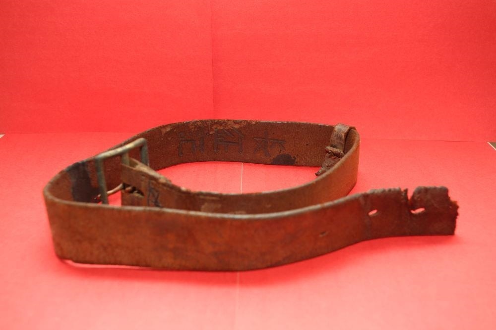 △陳列在陸軍第75集團(tuán)軍某旅榮譽(yù)室的半截皮帶(復(fù)制品)。