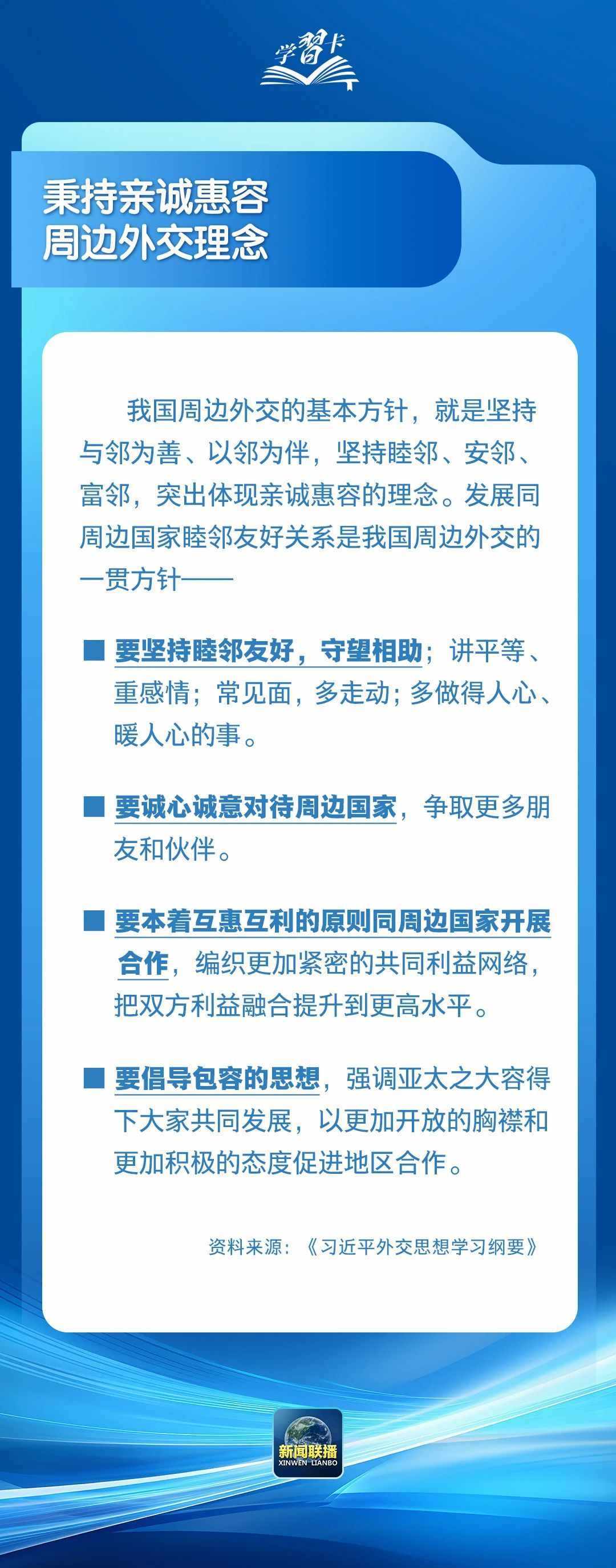 周邊是我國(guó)安身立命之所,發(fā)展繁榮之基,對(duì)我國(guó)具有極為重要的戰(zhàn)略意義。中國(guó)周邊外交基本方針有何深刻內(nèi)涵?一起學(xué)習(xí)↓↓