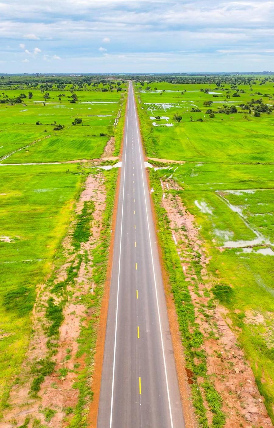 這是2024年7月14日在柬埔寨特本克蒙省拍攝的71C號國家公路(無人機(jī)照片)。新華社發(fā)(尼多拉攝)