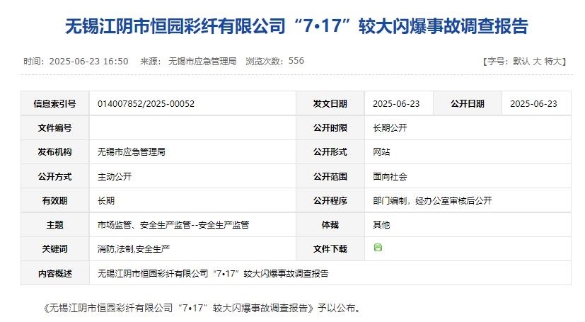 調(diào)查認定,無錫江陰市恒園彩纖有限公司“7·17”較大閃爆事故是一起因崗位員工盲目操作,生產(chǎn)單元安全設施缺失,現(xiàn)場應急處置不當,地方黨委、政府及其有關部門履職不到位而導致的較大生產(chǎn)安全責任事故。