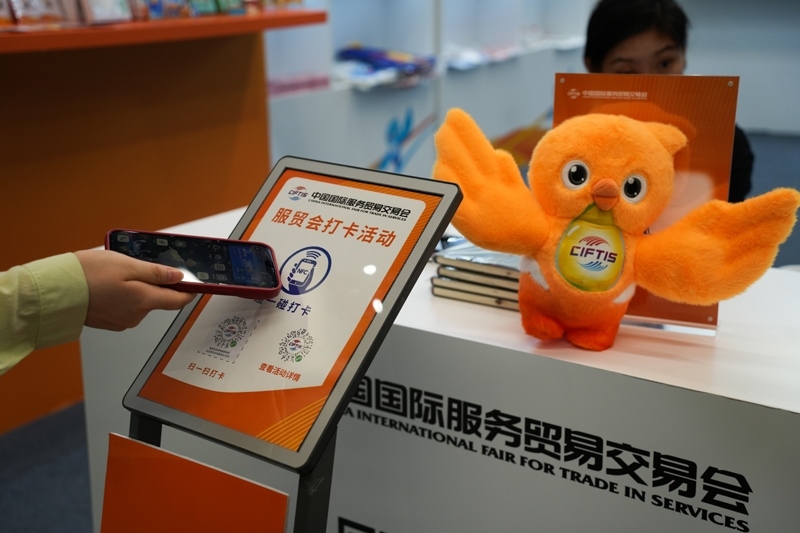 9月13日,參觀者參與服貿(mào)會(huì)打卡活動(dòng)。