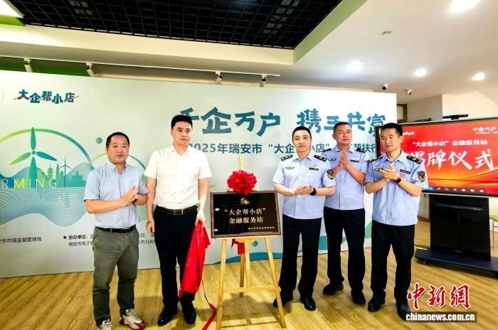 2025年,浙江瑞安,“大企幫小店”金融服務站揭牌儀式。 趙荷 供圖