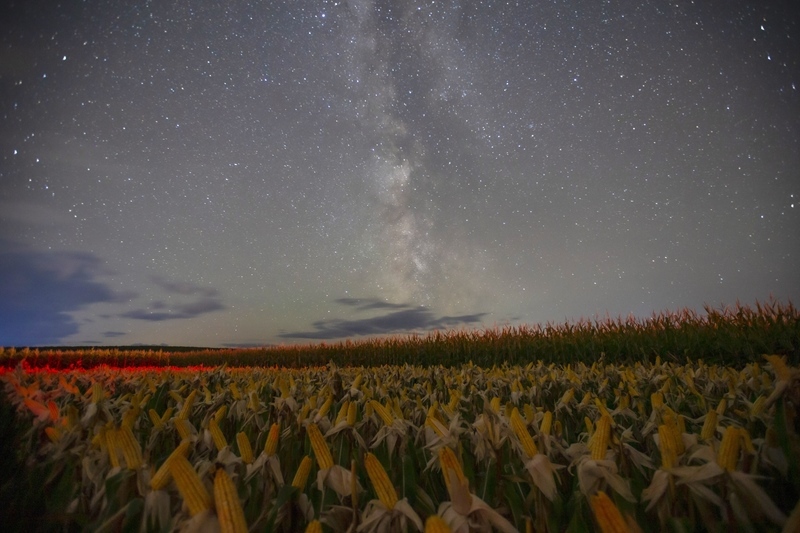 9月21日在黑龍江省伊春市嘉蔭縣拍攝的星空下的玉米。