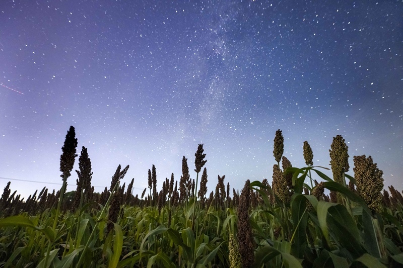 9月22日在黑龍江省齊齊哈爾市拍攝的星空下的高粱。