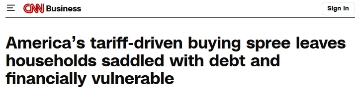 28歲的護士安妮卡·惠洛克一家為避免關(guān)稅帶來的價格沖擊,通過貸款和房屋凈值信用額度提前消費了13.7萬美元,用于購車、家電和房屋修繕。因丈夫即將返校、退休金縮水,家庭已入不敷出。信用卡瑪(CreditKarma)的調(diào)查顯示,51%的受訪者表示自己因關(guān)稅而改變了消費行為,18%提前進(jìn)行大額采購。即便提前囤貨,關(guān)稅推高的通脹仍會波及所有人,參與春季消費熱潮的消費者在經(jīng)濟上會更加脆弱。
