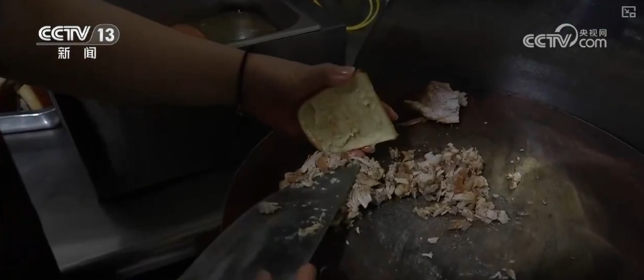 這種小吃叫作鍋盔牙子,是咸陽最有代表性的小吃之一。關中地區(qū)的人們把烙餅叫作鍋盔,將烙餅制成月牙形,再夾上臘汁肉,就是咸陽特有的鍋盔牙子。它和陜西著名的“肉夾饃”類似,但是更加小巧精致,吃起來更加酥脆。