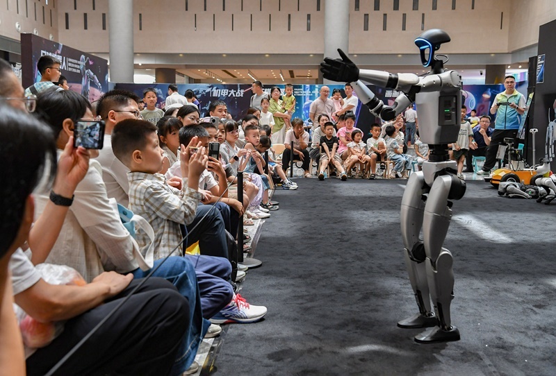 當日,浙江省金華市金華之光文化廣場科技館舉辦AI智能機器人科普展,吸引了許多家長帶著小朋友與人形機器人、智能機器狗、下棋機器人、足球機器人等互動,沉浸式感受人工智能技術(shù)的魅力,樂享暑期生活。