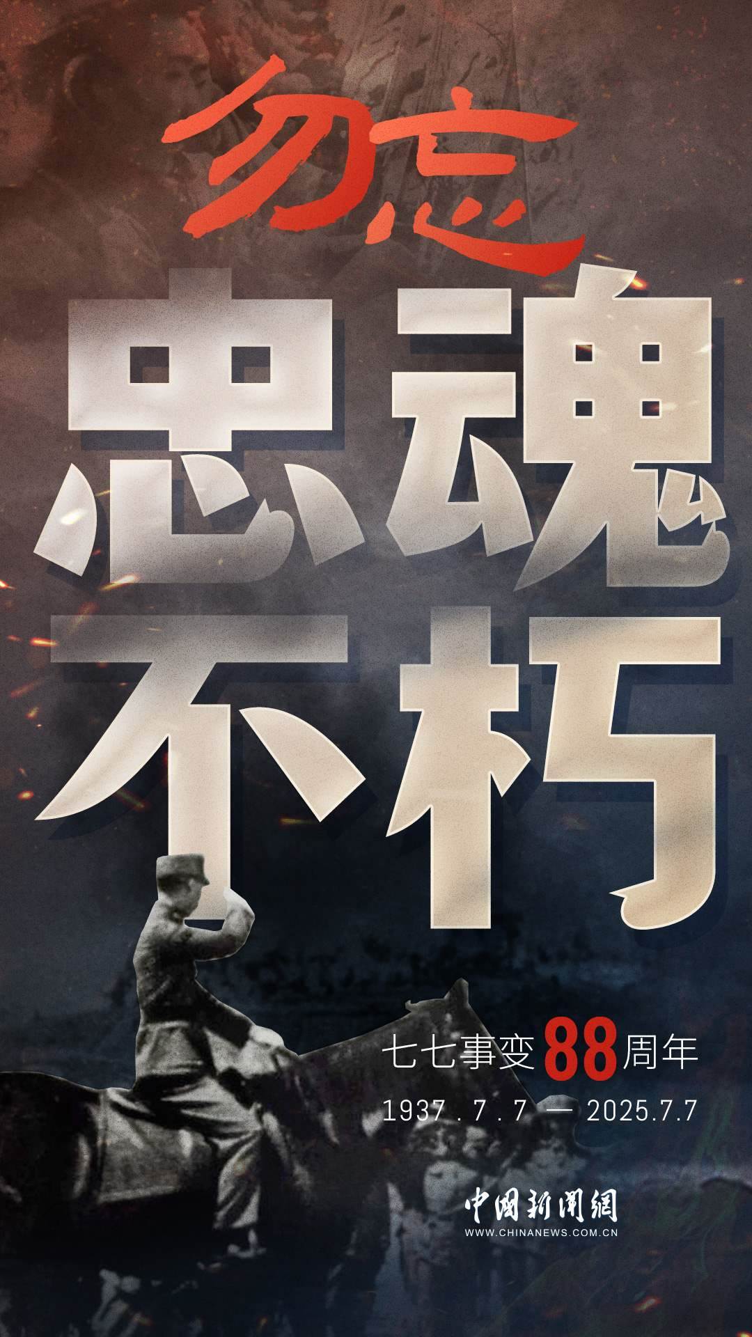 1937年7月7日,盧溝橋的槍聲撕裂長夜,中華兒女赴湯蹈火,以血肉之軀筑起御敵長城。88載歲月流轉,硝煙雖散,彈痕猶在,那段浸透血淚的歷史,是刻在民族記憶里永不褪色的烙印。今日山河錦繡,國泰民安,正是先烈用生命換來的盛世。七七事變88周年,致敬英烈,銘記國殤,吾輩自強,護山河無恙!