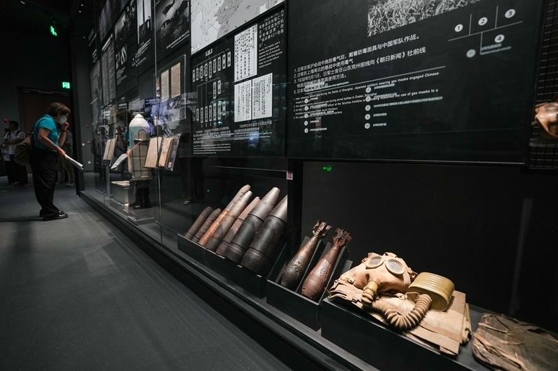 7月8日,在中國人民抗日戰(zhàn)爭紀念館《為了民族解放與世界和平》主題展覽上,參觀者在展示日本侵略者實施細菌戰(zhàn)和化學戰(zhàn)暴行的區(qū)域參觀。