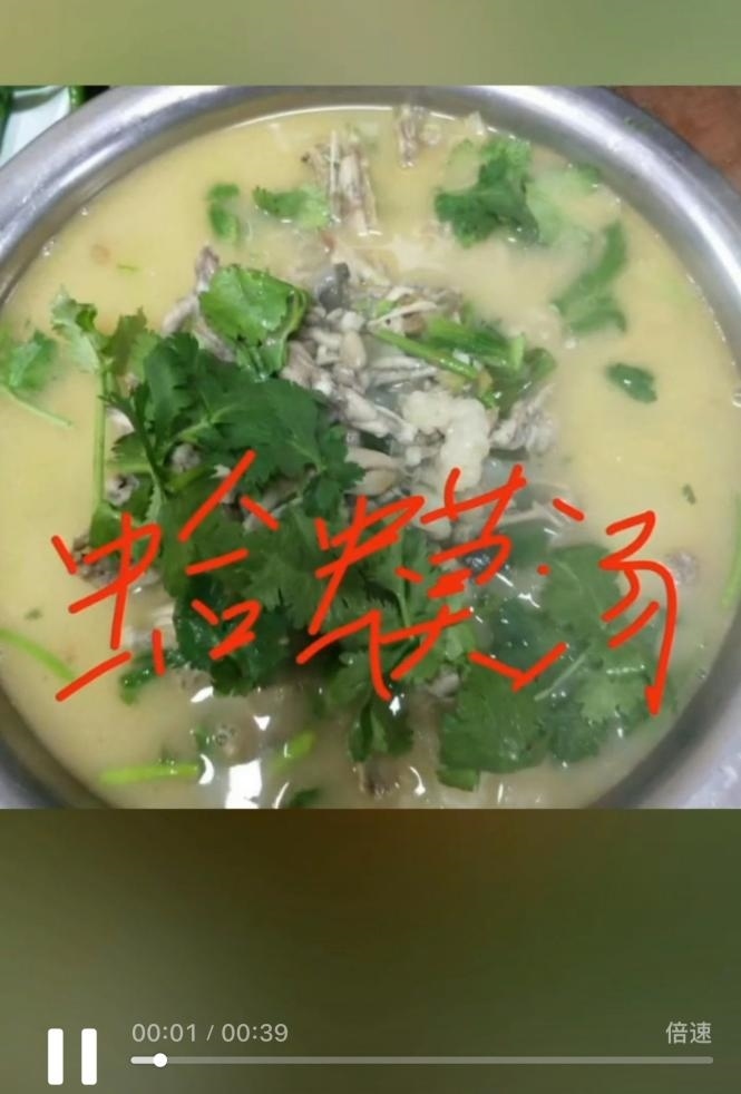 “我拍的蛤蟆湯就是我們本地的一個(gè)名吃(特色菜),我們這附近基本每個(gè)餐館都有這道菜,原材料在菜市場(chǎng)和青菜一樣都能買得到?!睆埮糠Q,她拍的蛤蟆湯里的蛤蟆就是牛蛙。因?yàn)楸镜囟颊J(rèn)可蛤蟆湯,所以她把牛蛙也統(tǒng)稱為蛤蟆。