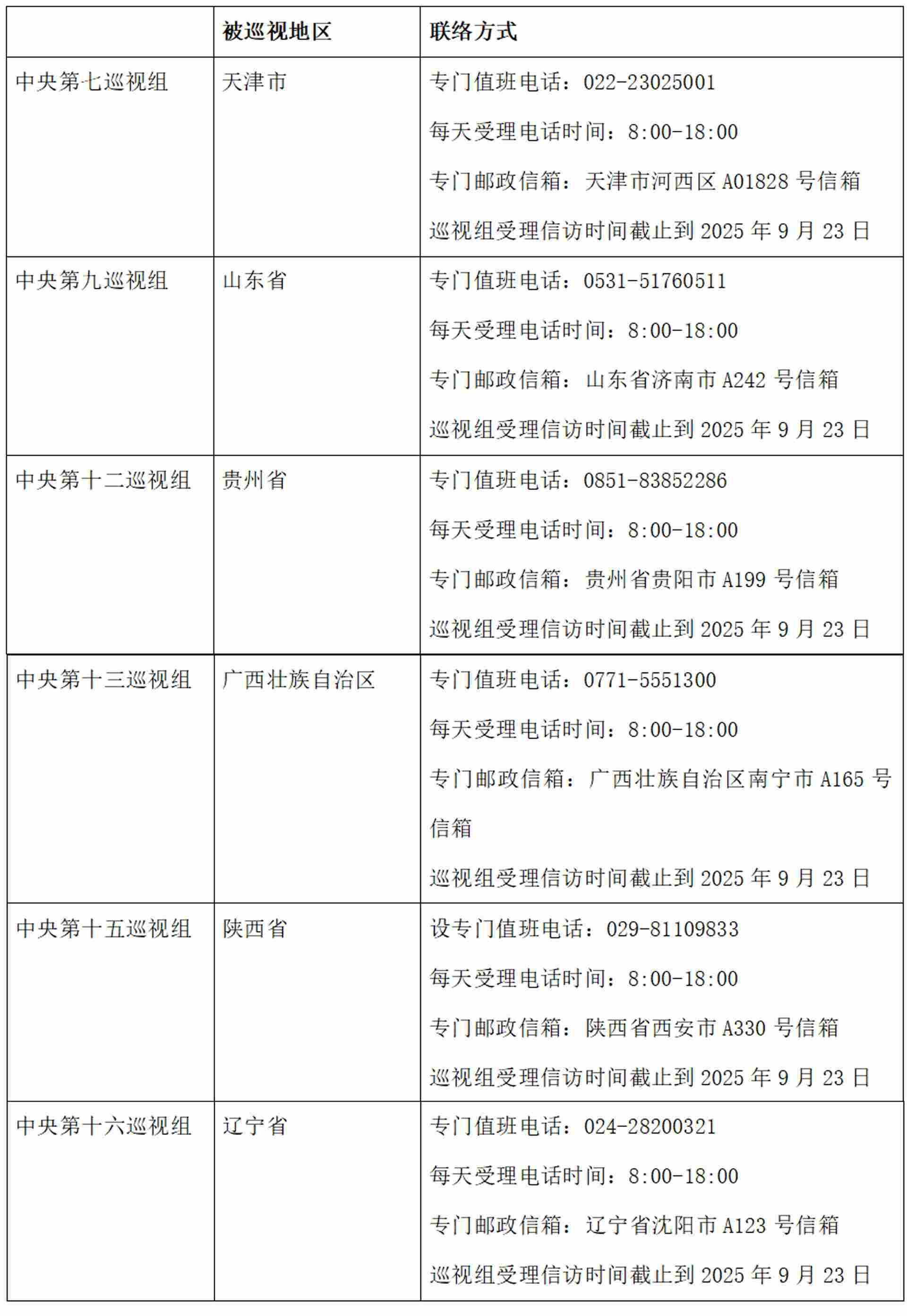 已進(jìn)駐6省區(qū)市!二十屆中央第六輪巡視陸續(xù)進(jìn)駐 聯(lián)絡(luò)方式公布