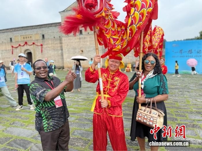 中新網(wǎng)7月21日電(記者 黃方) 鼓聲“咚咚咚”在江西贛州龍南市關(guān)西新圍響起,非洲記者大會秘書長威廉·奧洛首次嘗試舞龍。他興奮地搖動著龍頭,跟隨節(jié)奏躍動,忍不住連聲贊嘆:“這太有節(jié)奏感了!”