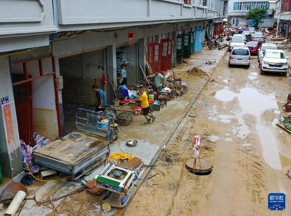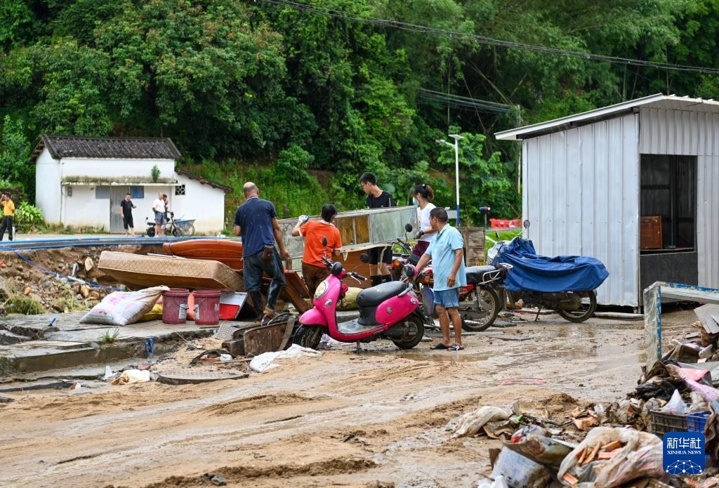 8月6日,村民在廣東清遠(yuǎn)佛岡縣石角鎮(zhèn)黃花村搬運受損家具。