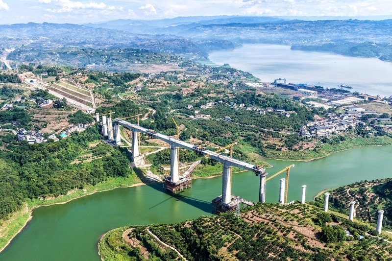 當(dāng)日,由中國(guó)鐵建大橋局承建的重慶至萬(wàn)州高速鐵路(渝萬(wàn)高鐵)渠溪河雙線特大橋順利合龍。渝萬(wàn)高鐵渠溪河雙線特大橋位于重慶市涪陵區(qū)珍溪鎮(zhèn),橫跨長(zhǎng)江支流渠溪河,全長(zhǎng)約953米,是全線重難點(diǎn)工程。