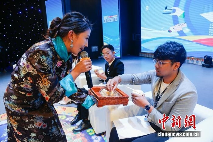 2024年8月18日,“同飲一江水 光影耀瀾湄”2024瀾湄國際影像周在青海省玉樹藏族自治州玉樹市正式啟動(dòng)。圖為來自瀾滄江-湄公河流域國家的6名青年代表品嘗玉樹酸奶、奶酪等當(dāng)?shù)靥厣r(nóng)畜產(chǎn)品。中新社記者 馬銘言 攝