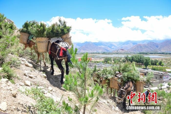 拉薩河流域造林隊(duì)員運(yùn)送樟子松樹苗。(資料圖) 中新社記者 貢嘎來松 攝