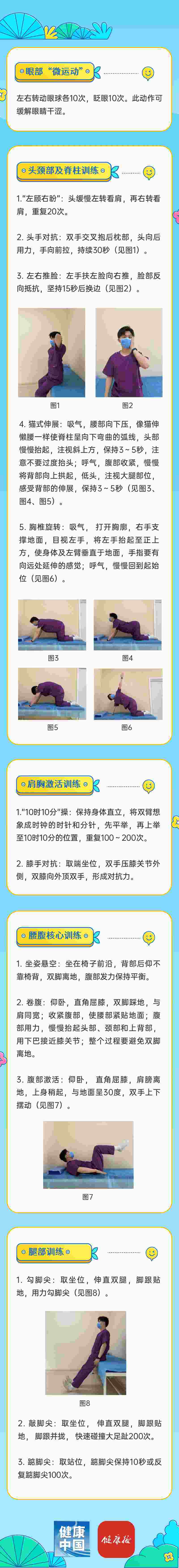 “微”亦有度:雖是碎片化運(yùn)動(dòng),大家在做每個(gè)動(dòng)作時(shí)仍需全神貫注,追求動(dòng)作質(zhì)量而非速度或數(shù)量,按標(biāo)準(zhǔn)完成1分鐘,遠(yuǎn)勝于馬虎應(yīng)付5分鐘。