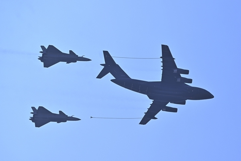 9月3日,紀(jì)念中國(guó)人民抗日戰(zhàn)爭(zhēng)暨世界反法西斯戰(zhàn)爭(zhēng)勝利80周年大會(huì)在北京隆重舉行。這是加受油機(jī)梯隊(duì)接受檢閱。
