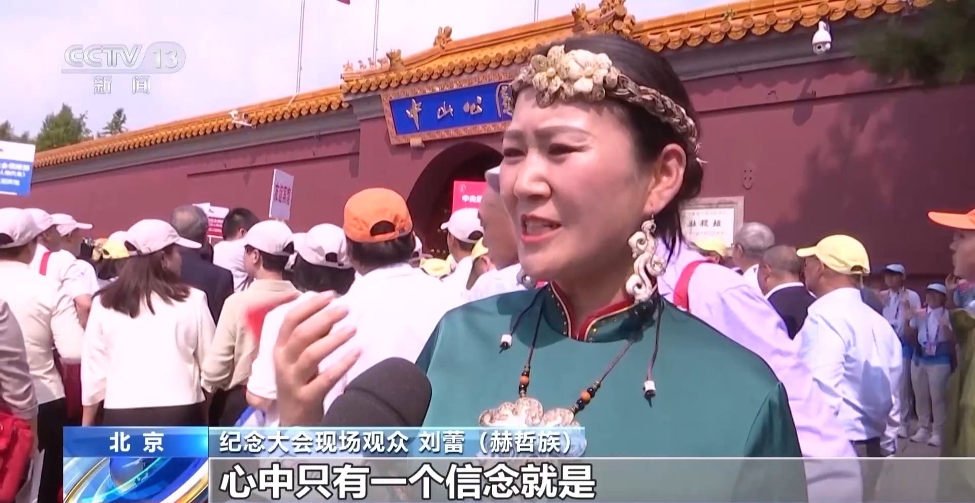 紀(jì)念大會現(xiàn)場觀眾 劉蕾:心中只有一個信念就是為我們祖國的強(qiáng)大而自豪。大家一同攜手努力奮進(jìn),向我們的偉大復(fù)興中國夢努力。