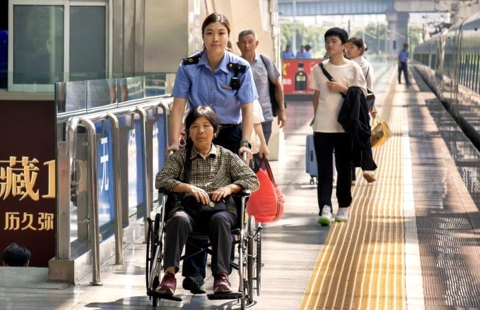 無錫站"太湖明珠"雷鋒服務(wù)站工作人員為重點旅客出行提供幫扶。張博倫 攝
