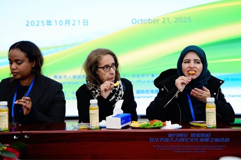 駐華大使夫人品嘗著不同品種的獼猴桃以及各式各樣的獼猴桃深加工食品,紛紛稱贊其細(xì)膩的口感、獨(dú)特的風(fēng)味和濃郁的果香?!斑@不僅是一次味覺的享受,更是一次對(duì)中國鄉(xiāng)村產(chǎn)業(yè)振興的直觀感受?!蹦β甯珩v華大使夫人表示,“我非常期待后續(xù)可以和周至合作,因?yàn)槟β甯绾芟矚g這種水果,我也希望可以在這里學(xué)到一些產(chǎn)業(yè)發(fā)展的知識(shí),并把這些知識(shí)帶回我們國家。”