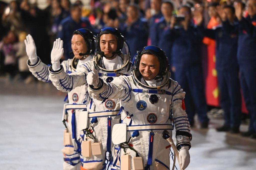 神舟二十一號航天員張陸、武飛、張洪章領命出征。