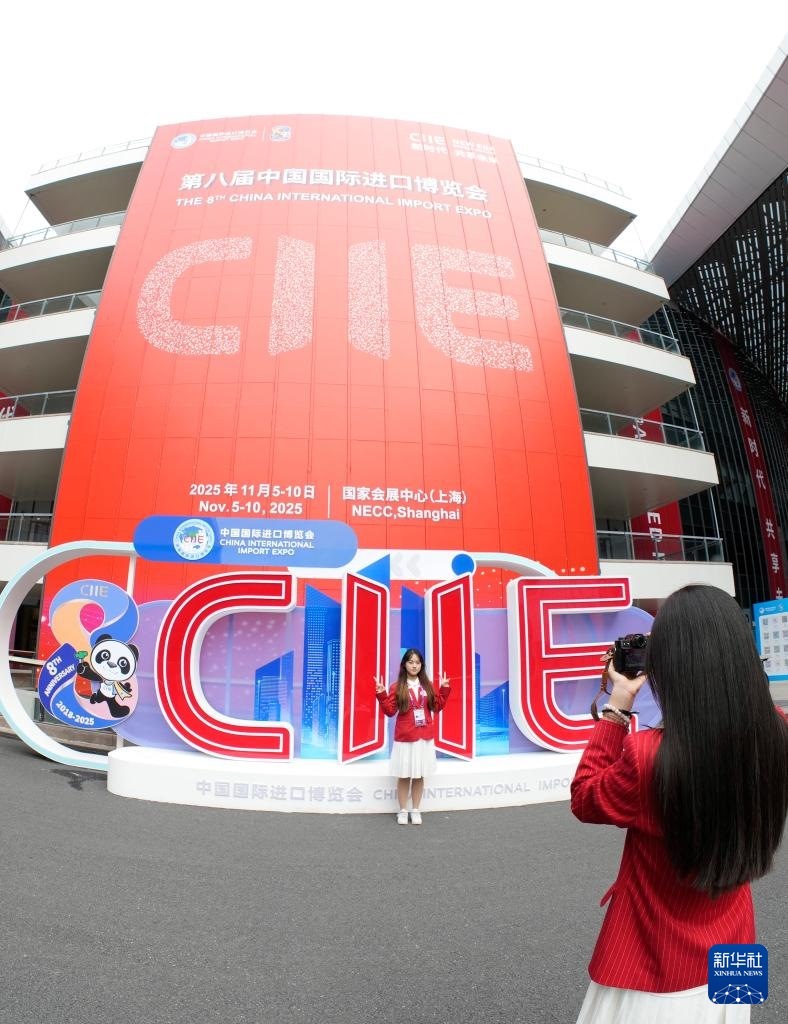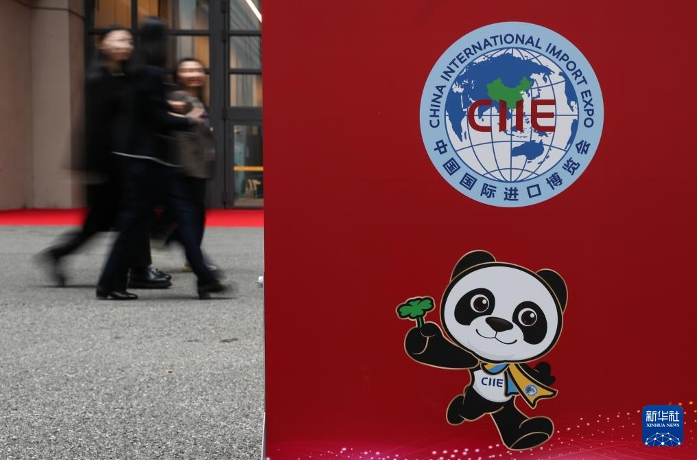 這是11月4日在第八屆進(jìn)博會(huì)舉辦場(chǎng)地——國(guó)家會(huì)展中心(上海)拍攝的進(jìn)博會(huì)宣傳標(biāo)識(shí)。