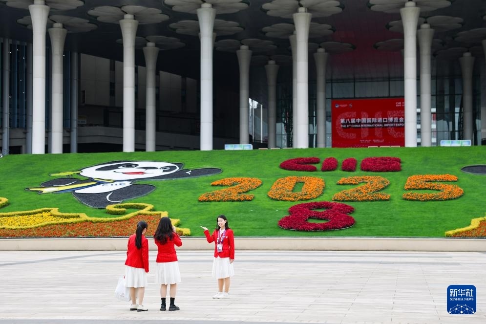 這是11月4日拍攝的第八屆進(jìn)博會(huì)舉辦場(chǎng)地——國(guó)家會(huì)展中心(上海)的南廣場(chǎng)。