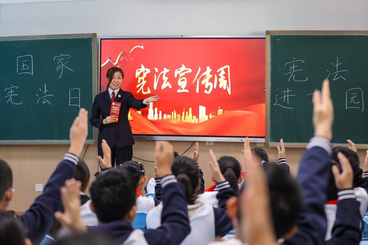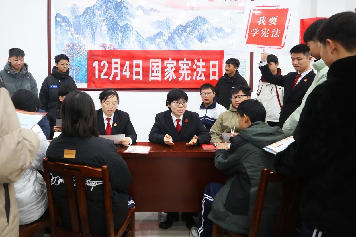 12月3日,山東省棗莊市市中區(qū)人民法院組織法官走進(jìn)校園,開展主題宣傳活動,向?qū)W生普及憲法知識、宣傳法治觀念、弘揚(yáng)憲法精神。(工人日報(bào)通訊員 孫中喆 攝)