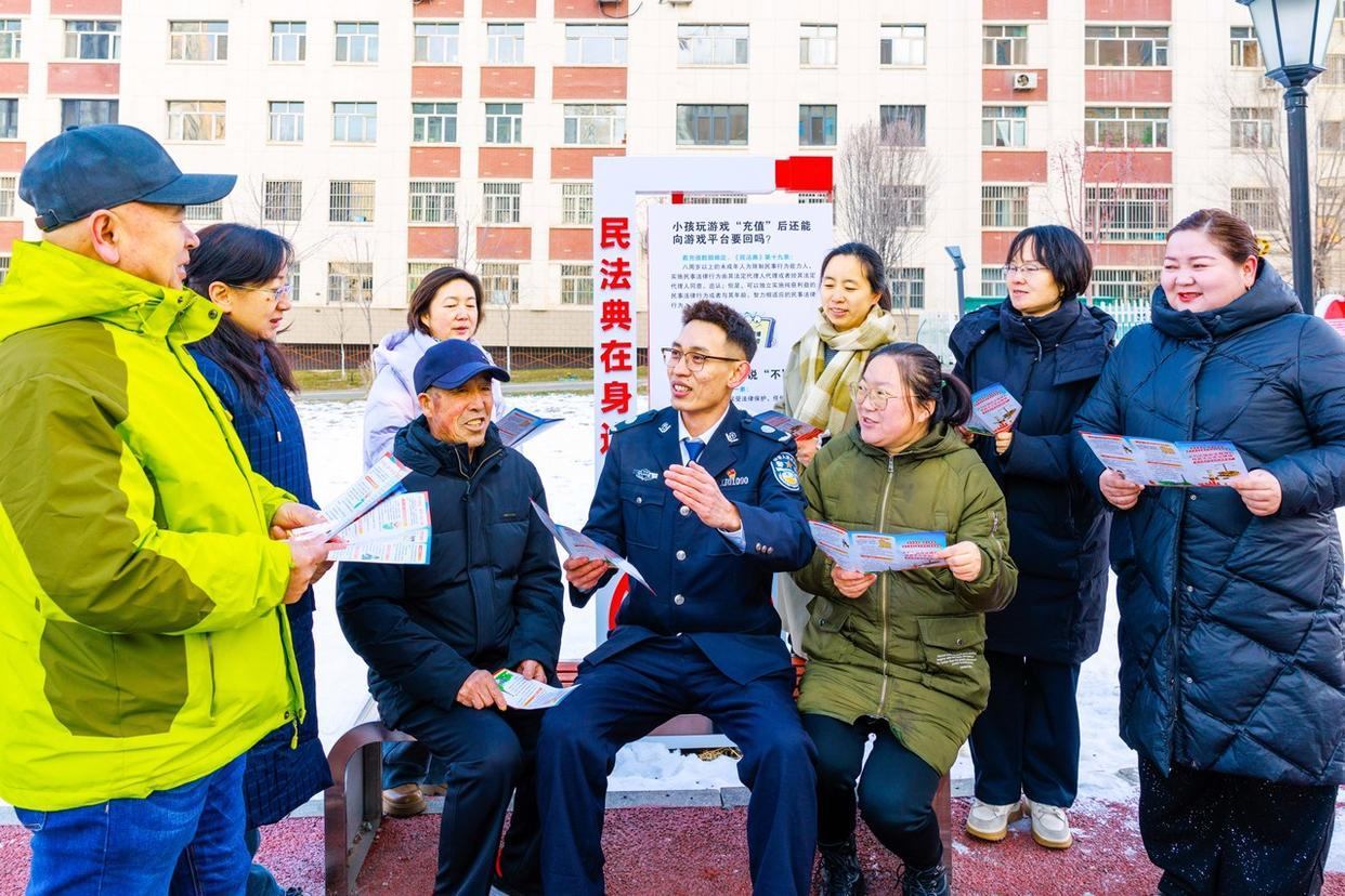 12月2日,新疆烏魯木齊市天山區(qū)幸福路街道天?;▓@社區(qū)組織黨員和志愿者上門為商戶和居民宣講憲法知識、發(fā)放憲法知識手冊、提供法律咨詢等多種形式,推動憲法宣傳教育深入人心。(工人日報(bào)通訊員 孫振嵩 攝)