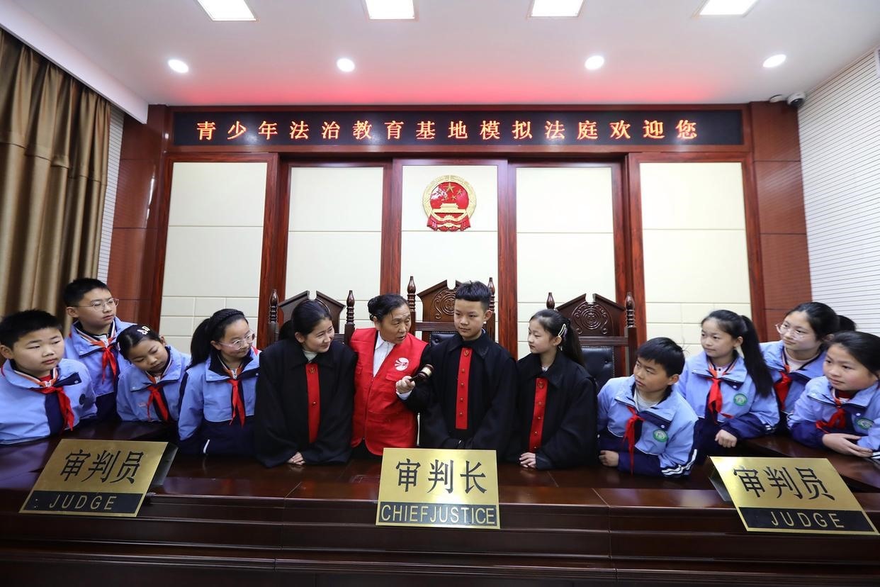 12月2日,孩子們在學(xué)習(xí)憲法知識、體驗(yàn)“模擬法庭”,“沉浸式”感知法律的神圣與威嚴(yán),在潛移默化中接受法治教育,爭做一個學(xué)法、懂法、守法的新時(shí)代好公民。(工人日報(bào)通訊員 李海濤 攝)