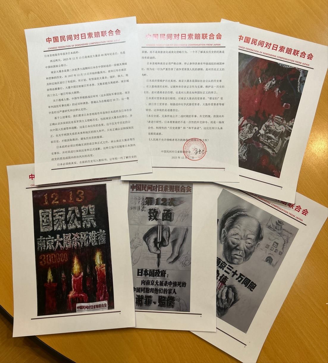 中國民間對日索賠聯(lián)合會成立于1992年,2006年在香港注冊,旨在促使日本政府向侵華戰(zhàn)爭中國受害者進(jìn)行謝罪、賠償。該組織自2014年開始,每逢南京大屠殺死難者國家公祭日,必通過日本駐華大使館致信日本政府及其首相,要求日本政府就南京大屠殺謝罪、賠償,此次為第12次致信。(完)