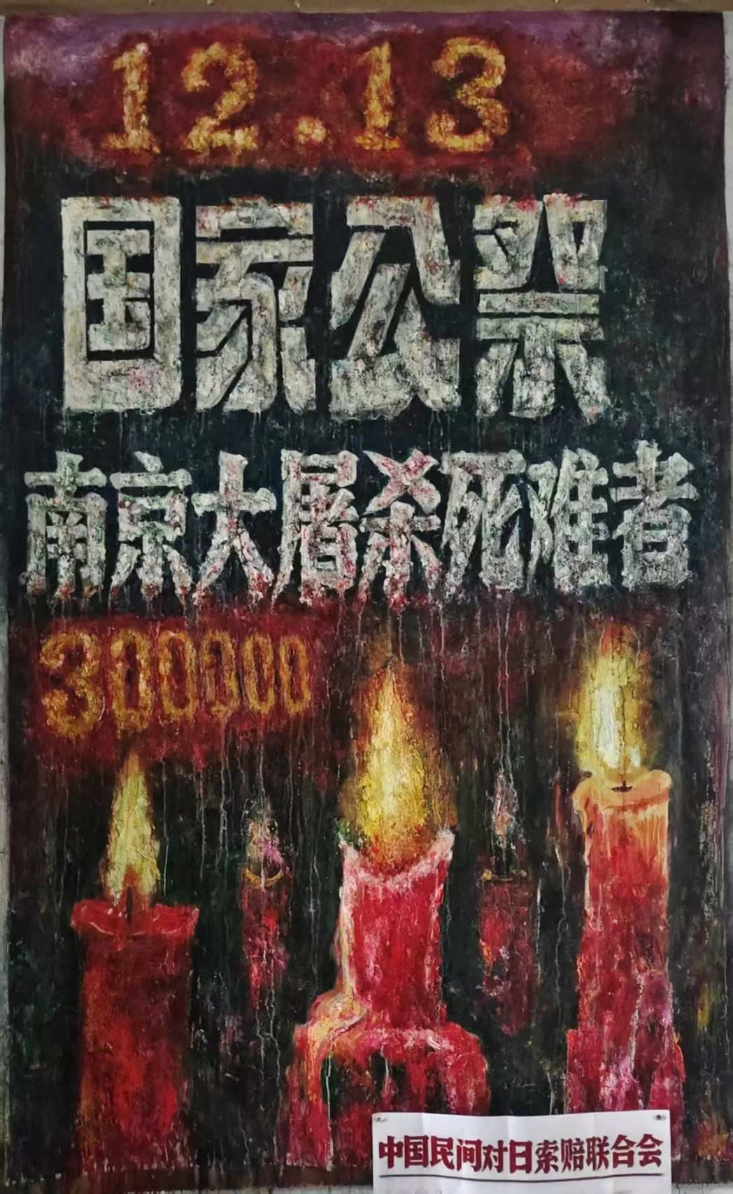 畫家李云創(chuàng)作的悼念南京大屠殺死難者的油畫。