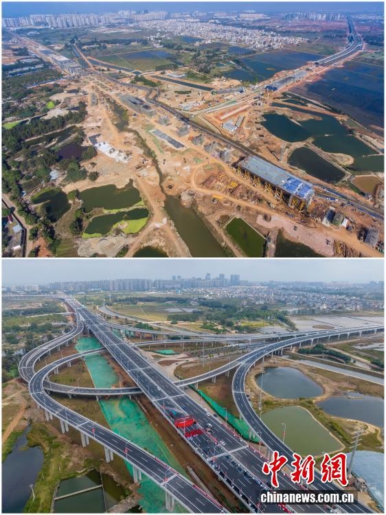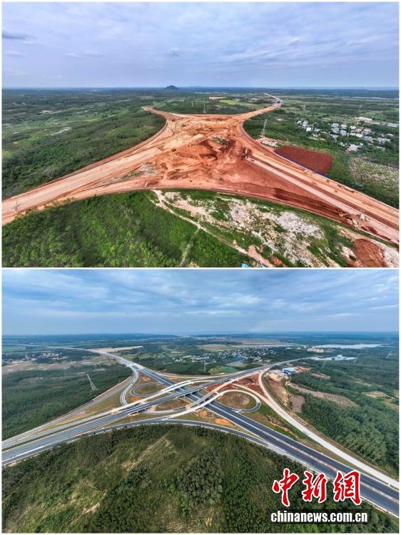 2025年12月18日,海南自由貿(mào)易港正式啟動(dòng)全島封關(guān)。近年來(lái),海南自貿(mào)港建設(shè)在利好政策帶動(dòng)下不斷刷新“自貿(mào)港速度”,一個(gè)個(gè)重大項(xiàng)目、重點(diǎn)園區(qū)拔地而起,直觀呈現(xiàn)海南自貿(mào)港的蓬勃生機(jī)。這里正成為中國(guó)對(duì)外開(kāi)放的新前沿、互利合作的新熱土和推動(dòng)經(jīng)濟(jì)全球化的新引擎。上資料圖為2021年2月6日正在建設(shè)中的G15沈海高速公路海口段項(xiàng)目海秀互通,下資料圖為2022年12月28日G15沈海高速公路海口段建成通車。(拼版圖,無(wú)人機(jī)照片)
