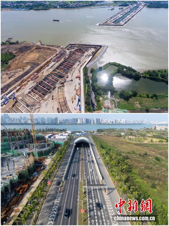 2025年12月18日,海南自由貿(mào)易港正式啟動(dòng)全島封關(guān)。近年來(lái),海南自貿(mào)港建設(shè)在利好政策帶動(dòng)下不斷刷新“自貿(mào)港速度”,一個(gè)個(gè)重大項(xiàng)目、重點(diǎn)園區(qū)拔地而起,直觀呈現(xiàn)海南自貿(mào)港的蓬勃生機(jī)。這里正成為中國(guó)對(duì)外開(kāi)放的新前沿、互利合作的新熱土和推動(dòng)經(jīng)濟(jì)全球化的新引擎。上資料圖為2019年6月19日的??谖拿鳀|越江隧道施工現(xiàn)場(chǎng),下資料圖為2025年12月7日已建成通車的海南省首條跨越南渡江隧道——文明東隧道。(拼版圖,無(wú)人機(jī)照片)