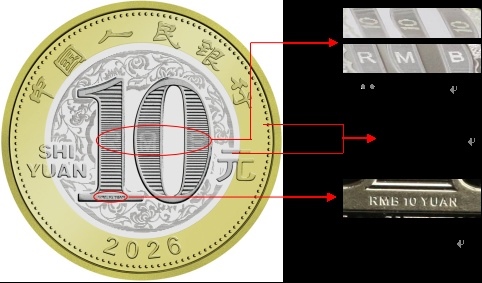 圖5 2026年賀歲雙色銅合金紀念幣防偽特征示意圖