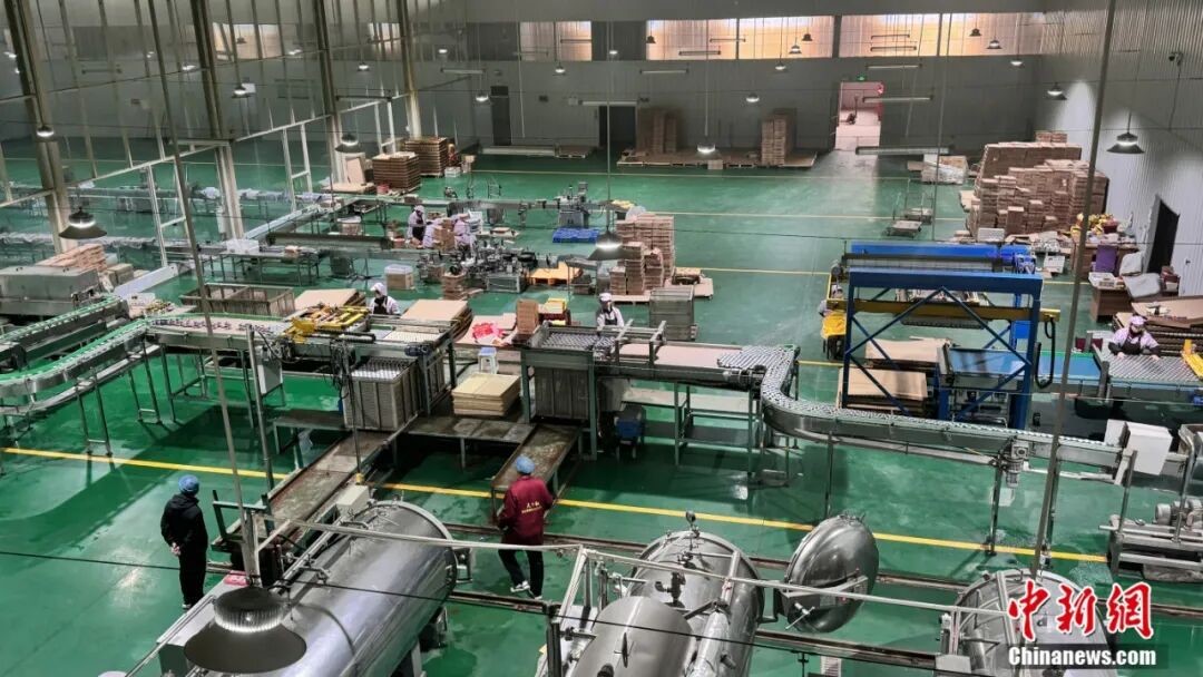 圖為雞澤縣天下紅辣椒有限公司瓶裝自動傳輸生產(chǎn)線。 中共雞澤縣委宣傳部供圖