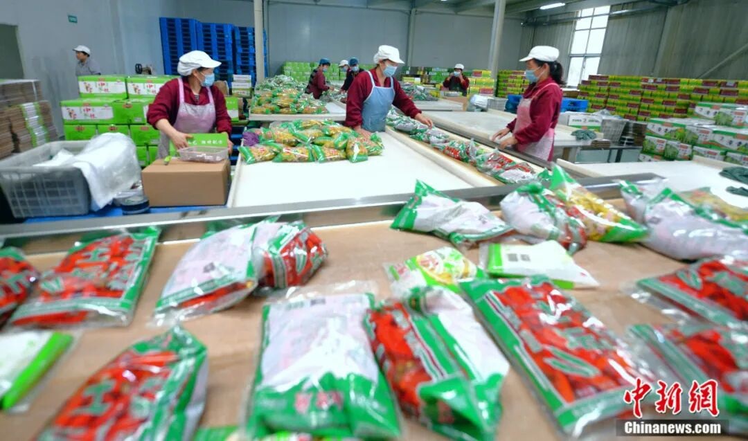 雞澤縣湘君府味業(yè)有限責任公司工人正在將辣椒成品進行裝箱。中共雞澤縣委宣傳部供圖