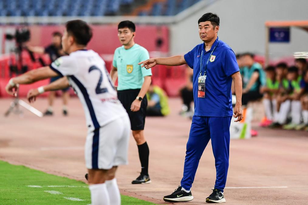 資料圖:韓鵬(右)在場(chǎng)邊指揮。新華社記者 朱崢 攝