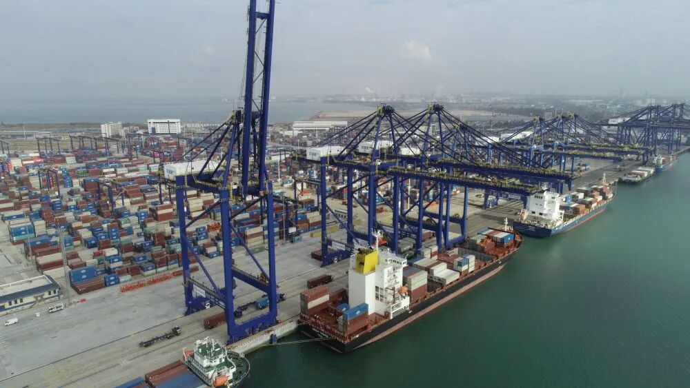 1月13日拍攝的洋浦國際集裝箱碼頭(無人機(jī)照片)。新華社記者吳茂輝 攝